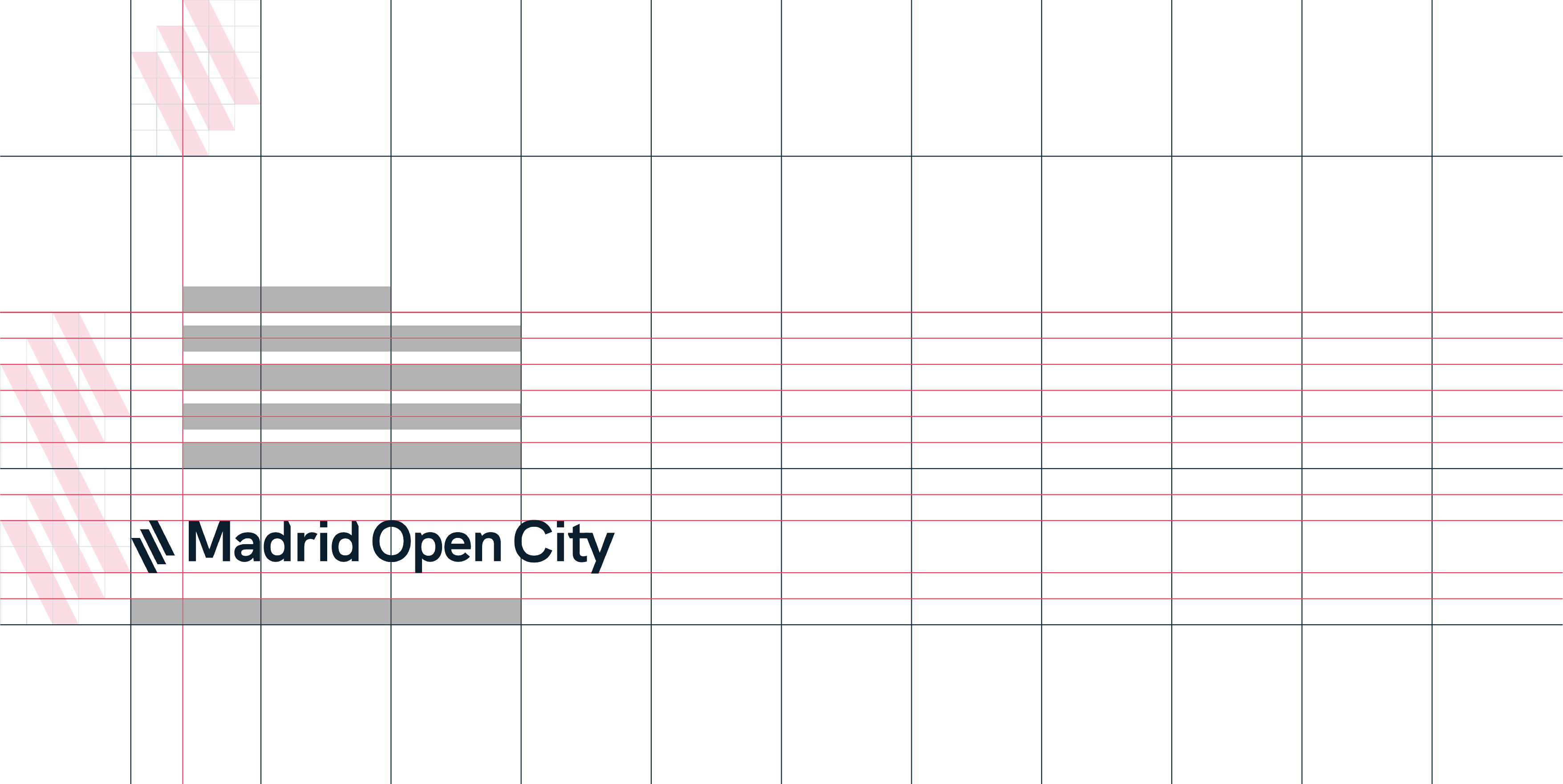 Tanto en web como impreso se usará el isotipo de la marca como módulo base. El isotipo está compuesto sobre una rejilla cuadrada de 5 horizontales por 6 verticales. Va a ser esta rejilla la que nos permita utilizar el isotipo para crear retículas. El submódulo cuadrado se usará para marcar el intercolumnado, los márgenes y el espacio horizontal entre componentes para la web.